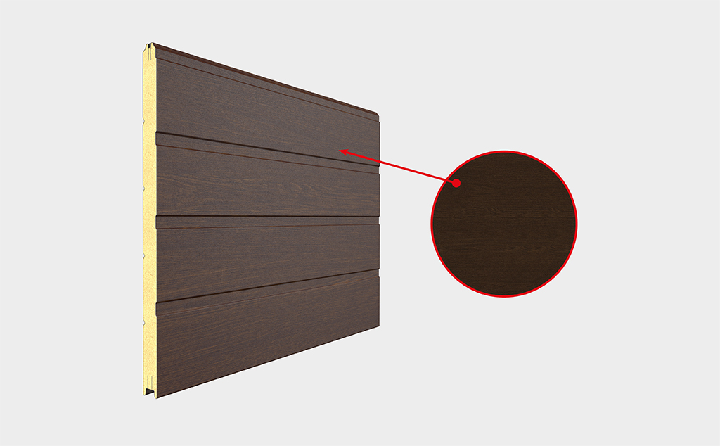 Компания DoorHan расширила ассортимент цветовых решений для промышленных секционных ворот, представив изысканный оттенок «тёмный дуб». Инновационное цветовое решение теперь доступно для промышленной серии ISD01, которая включает различные варианты панелей: «доска», «горизонтальная полоса», «широкая центральная полоса» и «волна» с текстурами «стукко» и «под дерево».